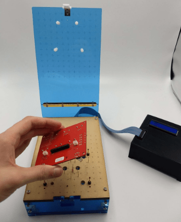 I customized a consumer bed-of-nails test fixture and designed a circuit board to receive and test various voltages. It uses an mbed microcontroller and has a readout display to indicate any failures. I also designed and 3D-printed a case for it.
